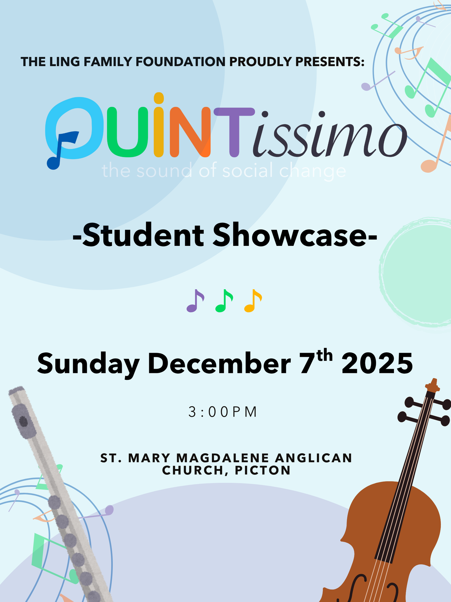 Quintissimo students will be delighting us with their musical talents. Featuring flute, cello, and choir, this is an event not to be missed!